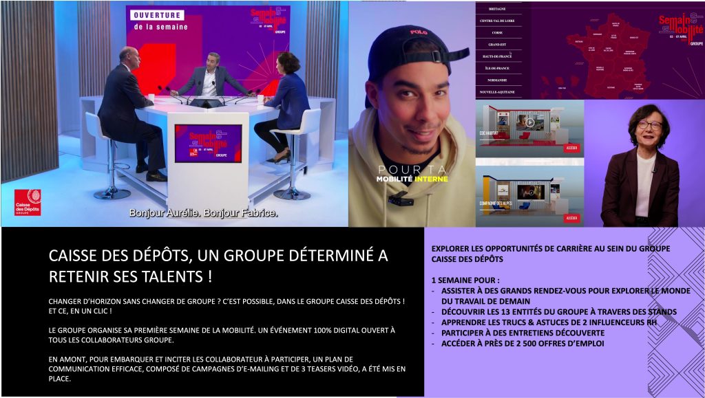 Pour la Caisse des Dépôts, organisation d’un événement en ligne dédié à la mobilité professionnelle interne pour la 2ème édition.